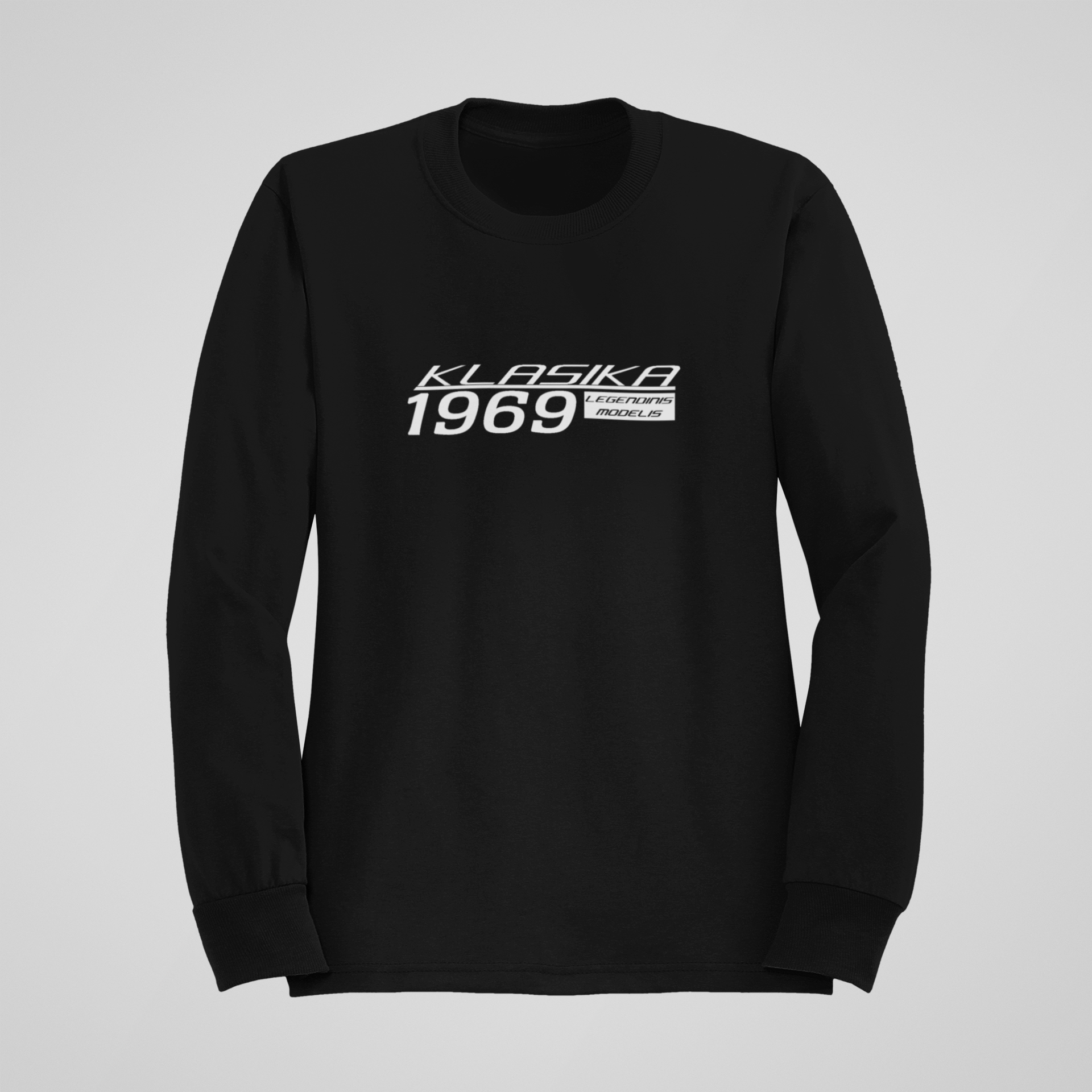 Juodas džemperis su spauda „Klasika 1969 – legendinis modelis“- riboto leidimo. Šie džemperiai skirti mėgstantiems klasiką ir norintiems turėti savitą stiliaus akcentą.