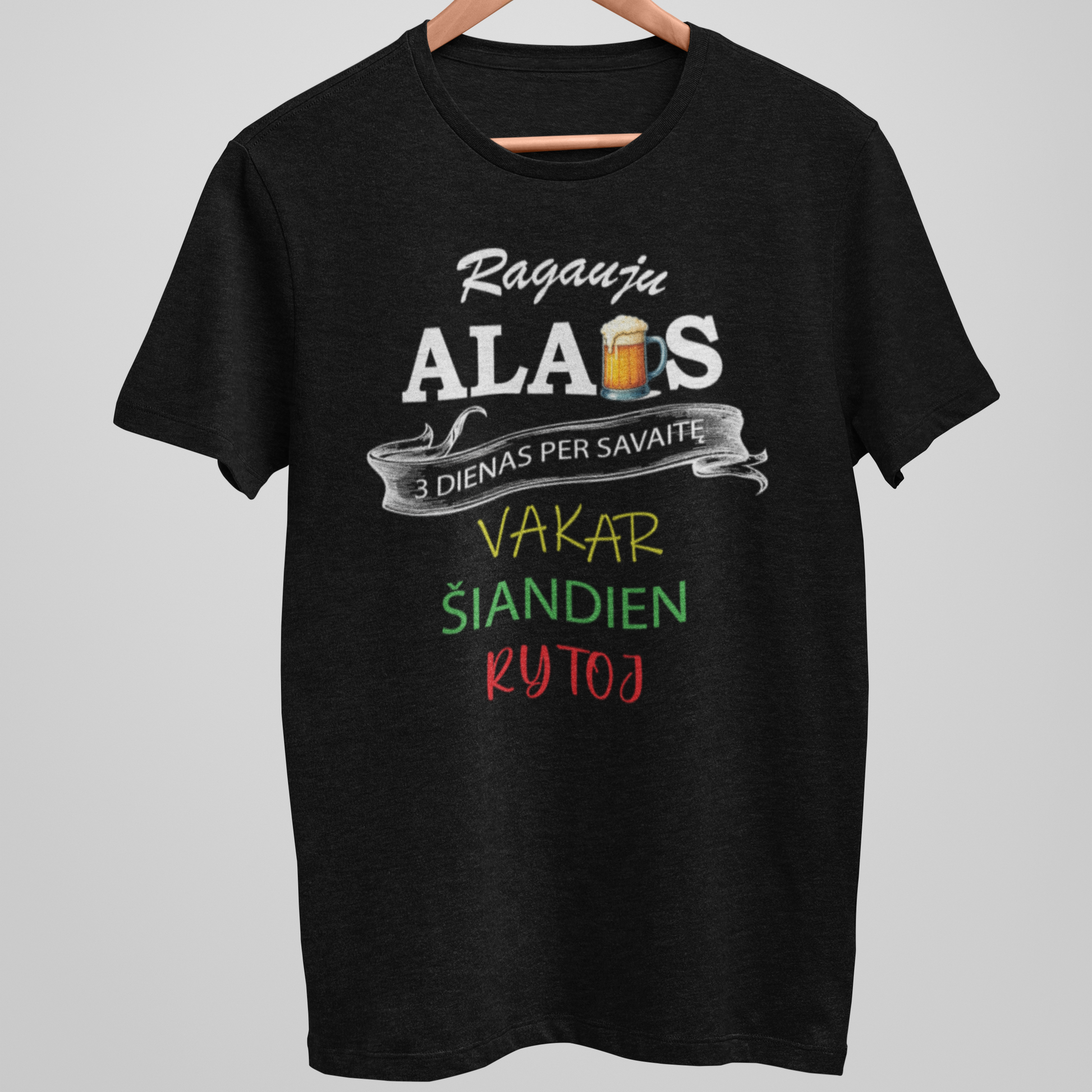 Šie juodi marškinėliai su linksma fraze apie alų – puikus pasirinkimas tikriems bokalo mėgėjams. Minkšta medžiaga, klasikinis kirpimas ir humoro dozė – vakarėliams ar dovanai.